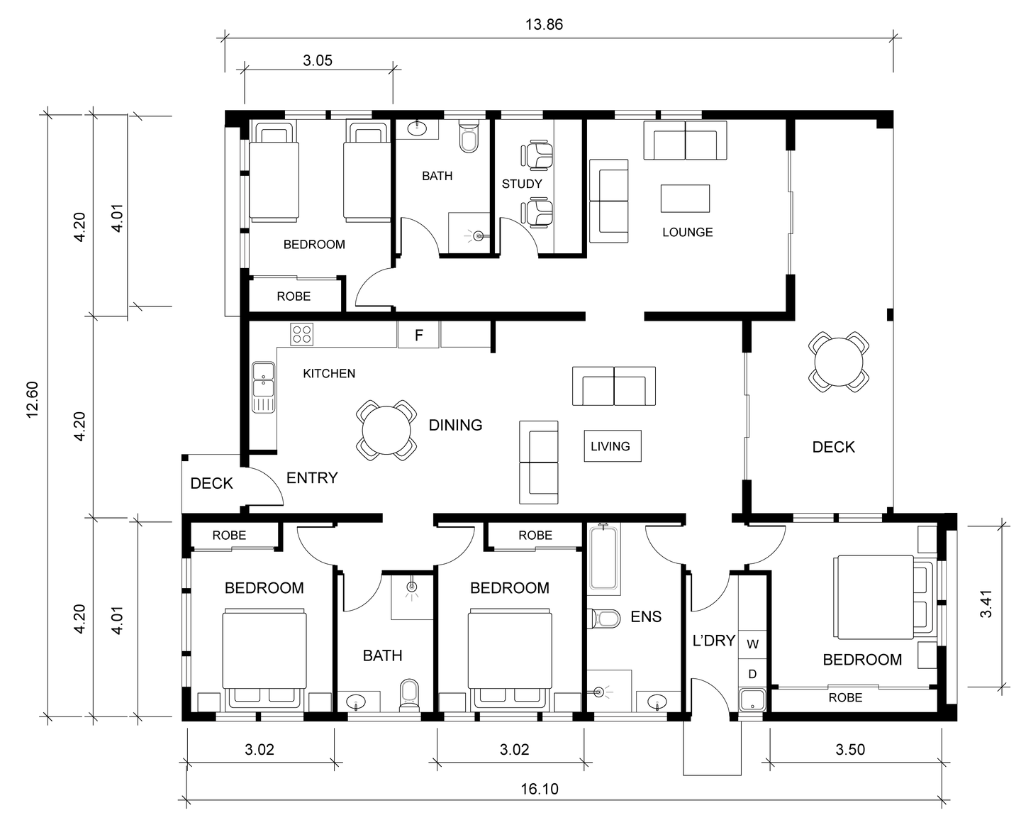 Apacious open-plan living and dining area that opens directly onto the extensive outdoor deck, enhancing natural light and year-round usability. All four bedrooms are well-proportioned, with smart zoning that offers privacy and comfort for families or guests. Built with Saltair’s robust, energy-efficient modular construction system, the Whitehaven 433 ensures durability, long-term performance and full compliance with NCC and council requirements.