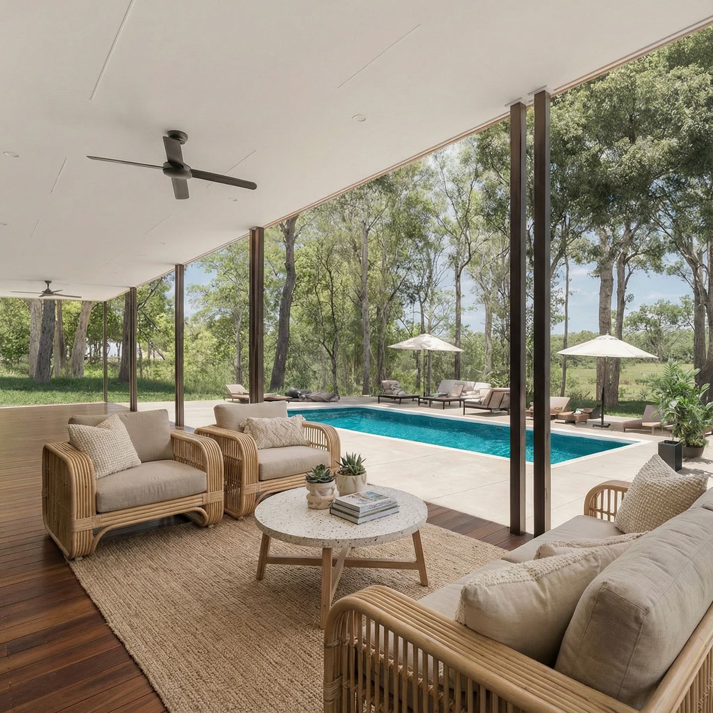With uncomplicated site access and a streamlined installation, the delivery process was efficient and controlled. The finished home sits confidently within its setting - a refined hinterland residence defined by longevity, comfort, and understated luxury.